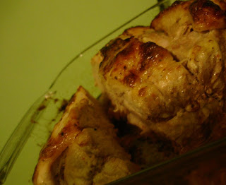 Противень вы заранее чуть-чуть смазываете маслом, кладете на него мясо и ставите в духовку, на максимальную мощность (вроде как, чтобы корочка образовалась и не дало соку особо вытечь). Через 15 минут убавляете мощность в половину и через 30 минут получаете удовольствие. через 30 минут удовольствия я не получила. вместо этого прибавила градусов и оставила в духовке еще. с этого момента готовность мяса определяется, что называется, на глаз и с помощью протыкания вилкой/ножом. если сок идет прозрачный, значит можно получать удовольствие. Я свое в итоге все таки получила.