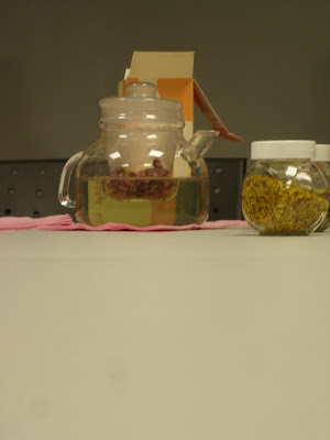2)чай из розочек шиповника. Вот чистые цветочные чаи нужно уже заваривать кипятком. сначала водичка стала такая синевато-зеленая, потом больше зеленая и в конце концов не отличить было по цвету от зеленого чая. По вкусу, видимо надо быть гурманом, чтобы впечатляться.