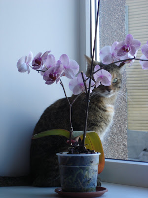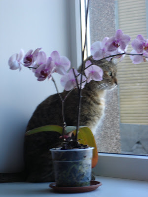 К слову сказать, есть две приметы, по которым можно определить где ниходится Клепа на даче. Первое - если на участке стоит тишина гробовая (птички не чирикают, мушки не летают, заблудшие кошки не бродят) значит Королевна на участке. Они ее боятся, потому что конкуренцию маломальскую кроме двуногих_прямоходящих она не любит вообще +)). А вторая примета - если где-то вопят вороны, значит там Клёпа. Обычно она залезат на дерево, устраивается там на ветке и начинается махаловка. Когти мы ей не подстригаем летом... Вокруг нее летают вороны с воплями а она лапами работает. Если вороны успокаиваются, то она слезает и по своим делам, но если вороны вдруг передумывают и опять на нее наподают, то она снова залезает на дерево и давай махаться. Веселуха.