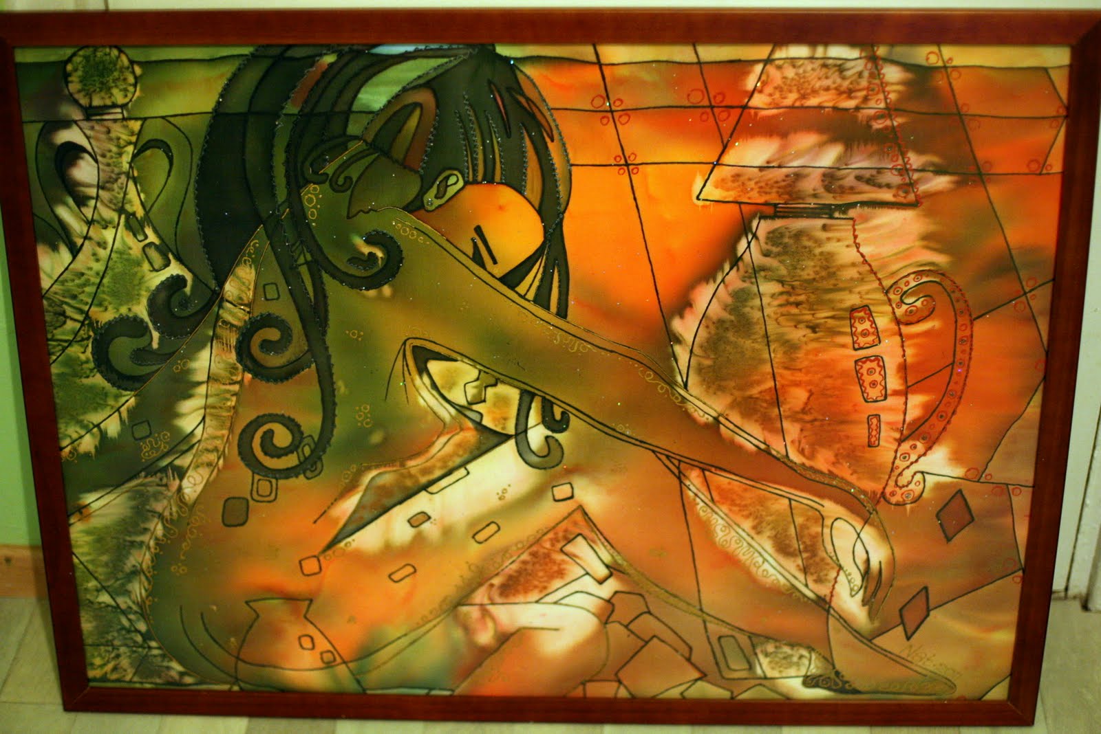 Совсем забыла упомянуть. Я вчера начала новую картину. Перевела, прошлась контуром. Первый раз взяла этот контур, поэтому получилось жирнова-то. Но с другой стороны хорошо, будет меньше затеков. Все, последний раз берусь за крепдешин +). Но это все исправится. Я полагаю. Там в конце очень много контурной работы будет. И еще кракле. Чешутся руки, чтобы продолжить. Удивительно, то название придумалось еще до того, как работа завершилось. "Маленькая индианка".