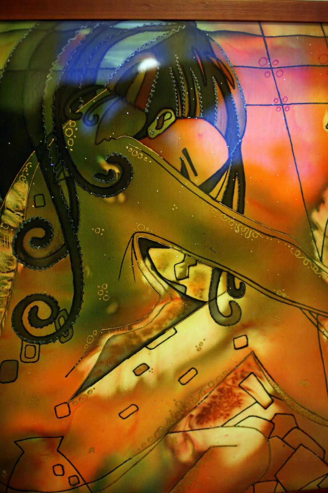 Кстати о рисовании. Натянула новое полотно крепдешина (наконец-таки я узнала как правильно пишется это слово). Размером поменьше. Мне очень нравится этот материал. На ощупь. Плотность. Оттого, что краски ярче. Но в тот же момент, я наверное мазохистка. Он очень сложен в рисовании. То есть не сложен-сложен, но да. Там легко может перетечь краска через контур. И в таких местах, где это не исправить и не скрыть. Кроме того, что она может перетечь, она с другой стороны, плохо растекается, по сухой ткани допустим и могут образовываться страшно некрасивые подтеки. Их конечно можно как-то попытаться скрыть, но "я то знааааю, куда смотреть". А если рисовать по мокрой ткани, то соответственно риск затеков увеличивается. Я наверное действительно мазохистка. Потому как негативных сторон по-моему больше получилось. Но позитивные сильнее. Они заставляют радостно и счастливо улыбаться. В то время как негативные... навреное просто "закаляют характер" и заставляют насупив брови и жестче взявшись за кисточку идти вперед, пусть даже навстречу яростной снежной метели. Вот как-то так. В общем, те, кто думают, что в рисовании нет сильных эмоций... ошибаются, в общем +)).